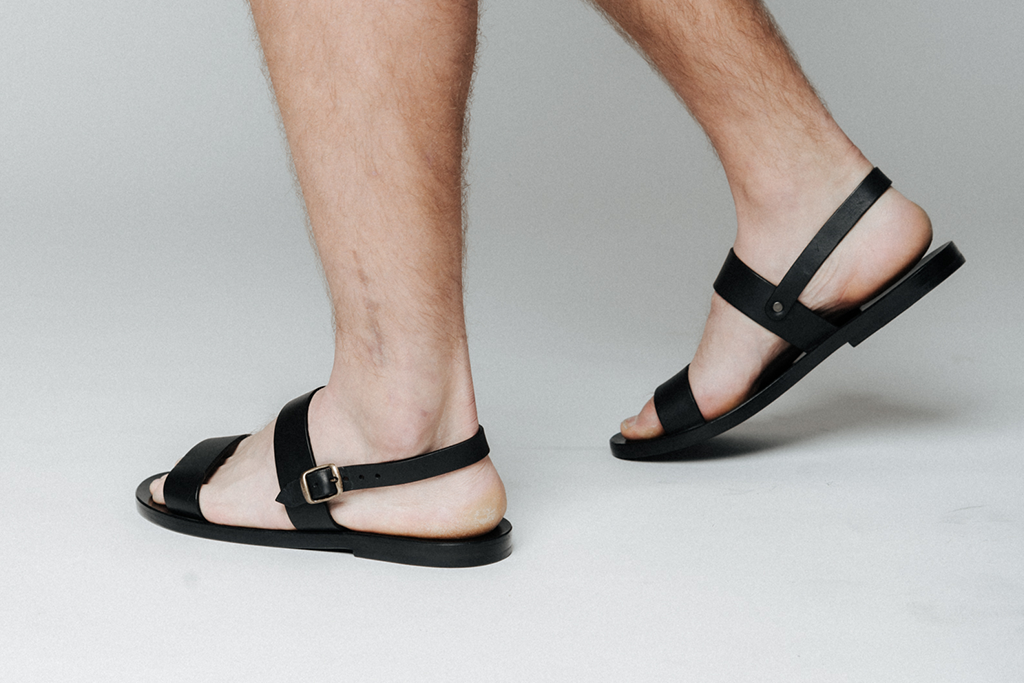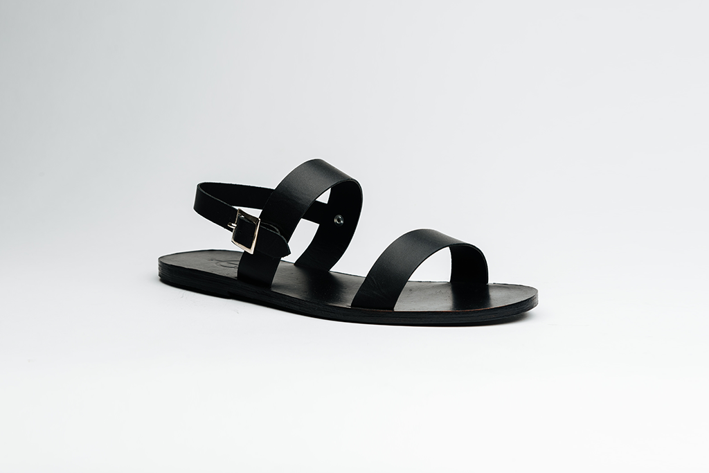 Sandalias emblemáticas de la casa OLIFE en cuero negro. Con amarre en el talón.Hecho a mano en México. DETALLES DEL...