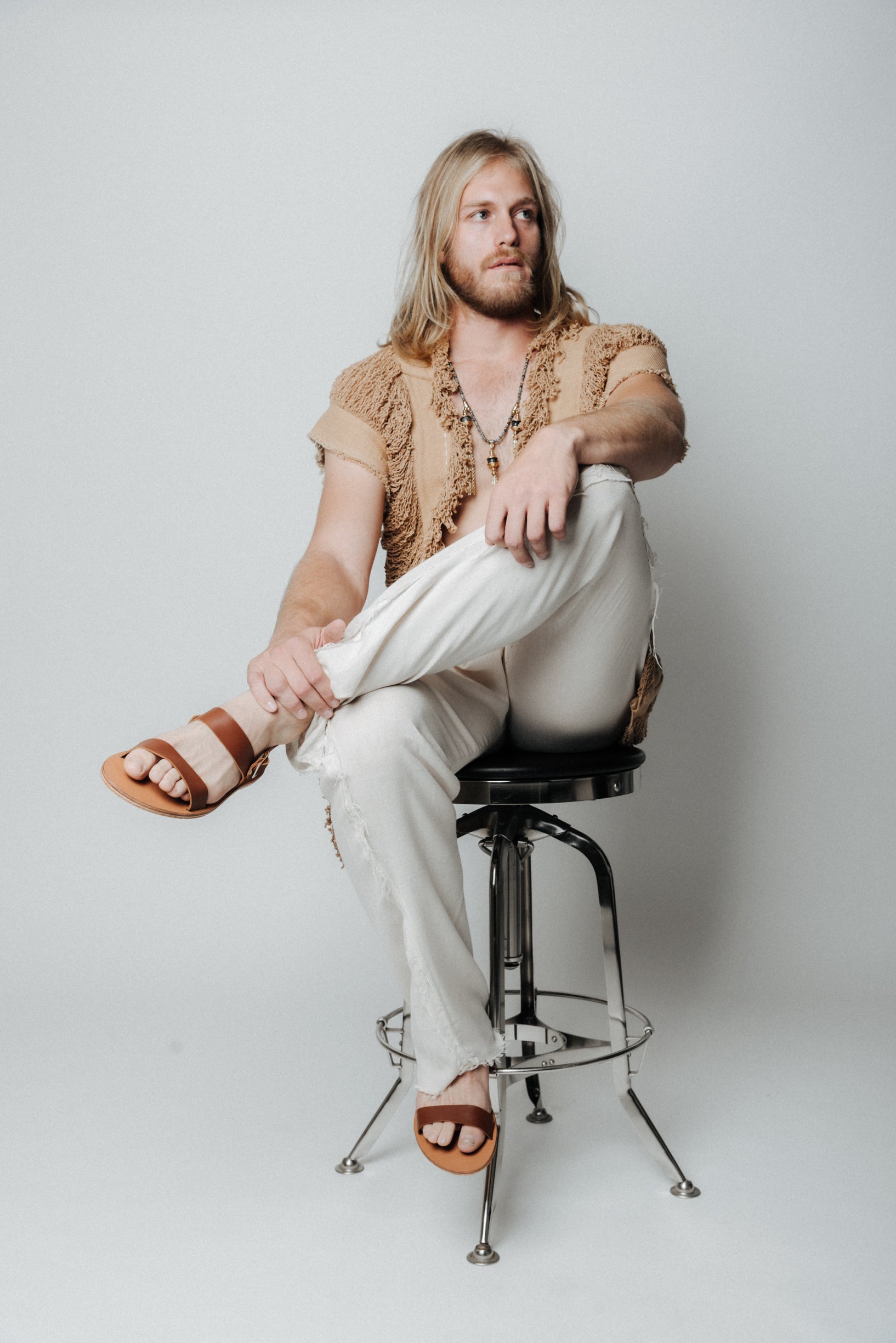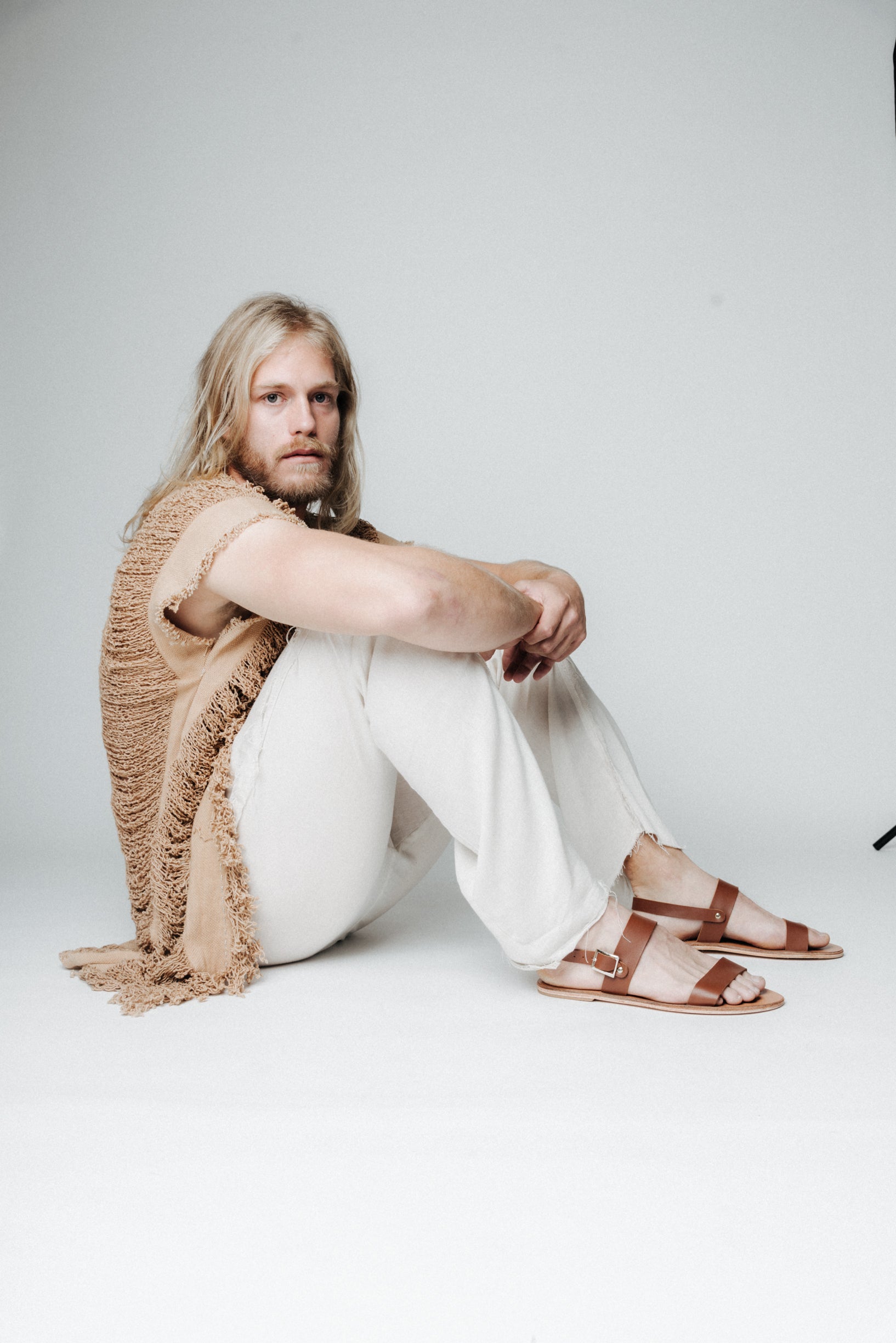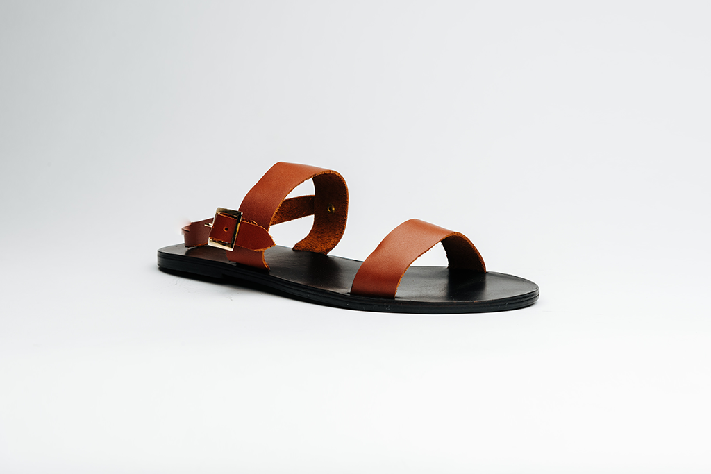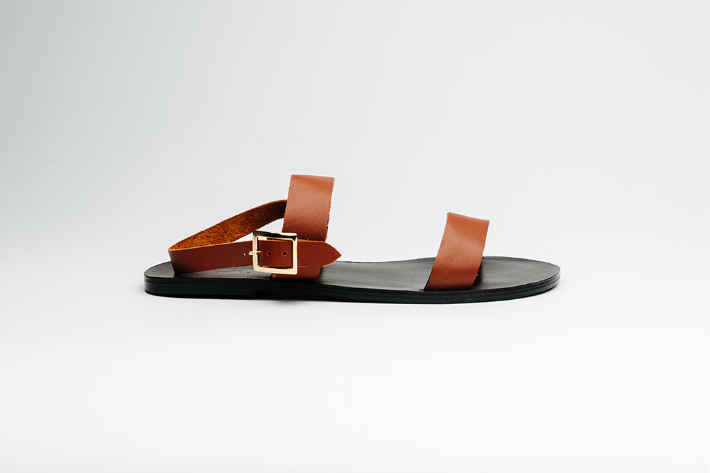 Sandalias emblemáticas de la casa OLIFE en cuero negro. Con amarre en el talón.